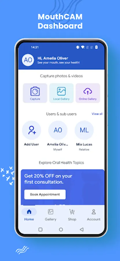 MouthCAM is a compact, handheld intraoral camera that offers clear and consistent images of your teeth and gums that helps you track and improve your oral health at home.