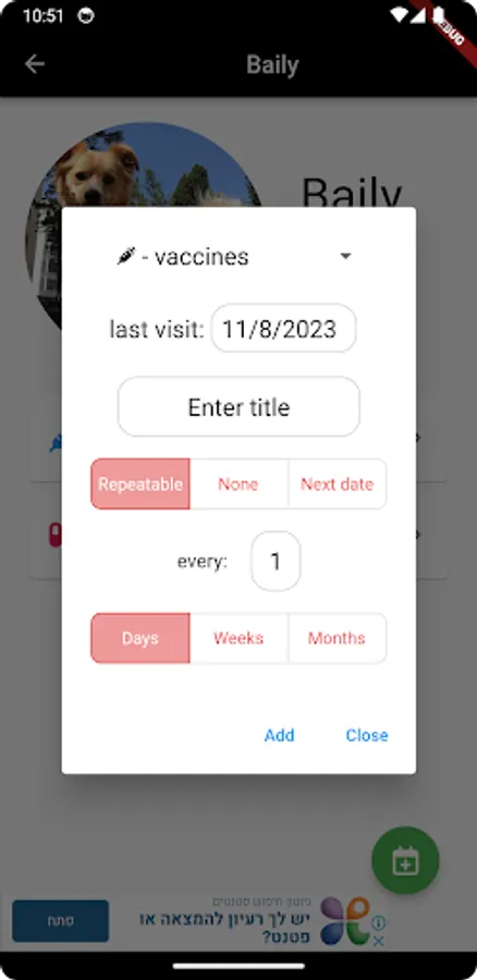Introducing Baily our Pets Organizer App – the all-in-one solution for managing your beloved pets and their appointments and treatments. Stay on top of your furry friend's health and happiness with this user-friendly app. Easily schedule vet appointments, set medication reminders, track vaccination schedules, and even record memorable moments with your pets. Take the stress out of pet ownership and ensure your pets receive the care they deserve. Download now and make pet management a breeze!