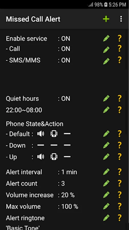 If missed call notification is not working, you will see on the upper banner why the app did not work when you run the application.