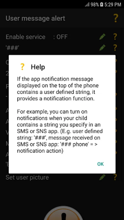 For example, you can turn on notifications when your child contains a string you specify in an SMS or SNS app.