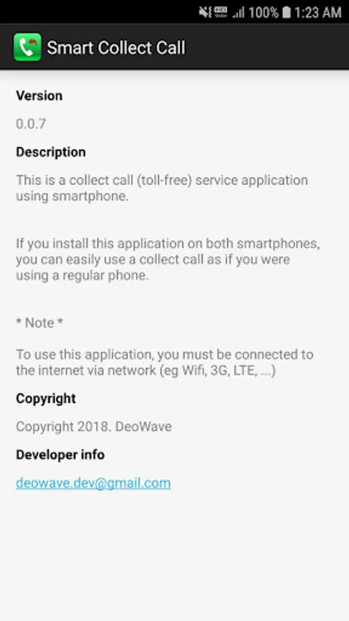 This application uses data for collect call (toll-free) requests.