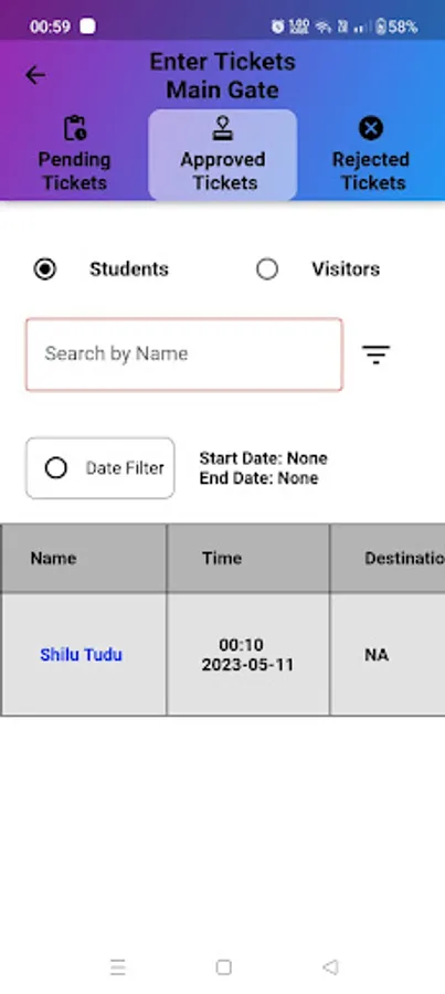 For students, the app simplifies their entry by utilising QR codes. They can generate their unique QR codes within the app, which the guards then scan and approve. All the relevant credentials and information of the students, previously entered by the admin, are displayed to the guards for verification.