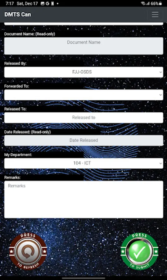 Document Management and Tracking System (DMTS) QR Code Scanner AKA DMTS Can is a companion Quick Response Code Scanner App for the Document Management and Tracking System (DMTS) of the DepEd, Schools Division of Roxas City. This is to easily track and manage documents received by the Schools Division Office and forwarded to its different department and/or sections. It's purpose is to improve the services provided by the Schools Division Office Personnel to its clientele.