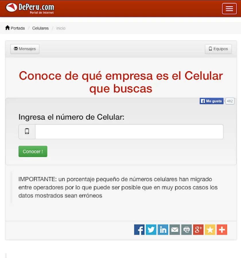 With this application you can identify the cellular operator of any mobile number working in Peru.