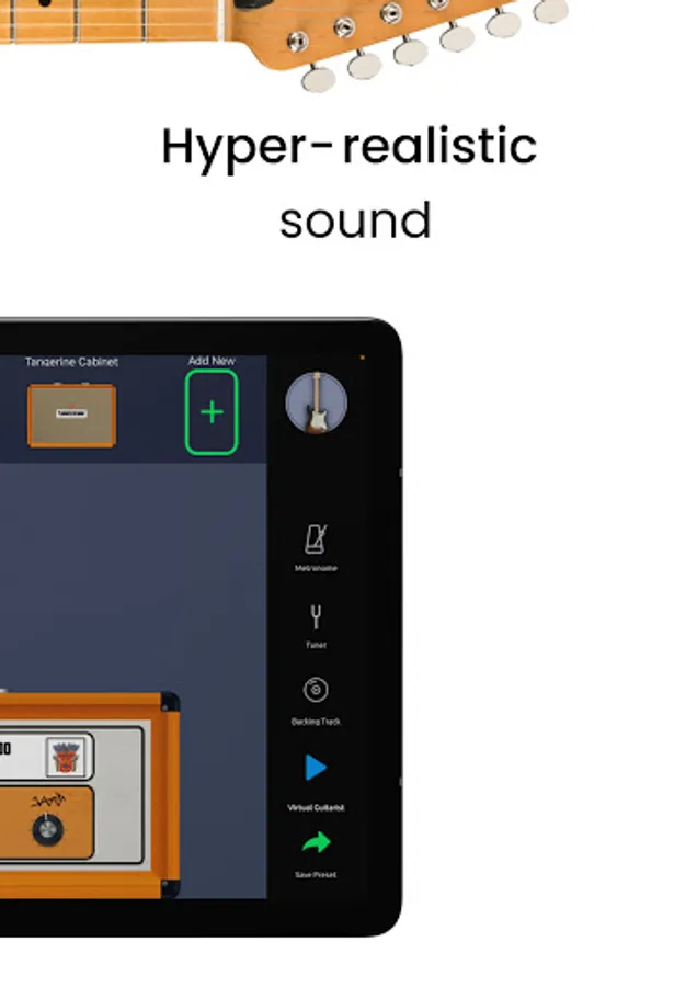 Guitar Tuner, Backing track and preset sharing are additional features for guitarists to feel home!