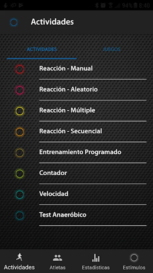 The "DEPORTEC" application allows you to register and control your physical activity using the SEM wireless connection devices. It has a tool to program reaction training or decision making as well as multiple tests to evaluate different physical abilities.