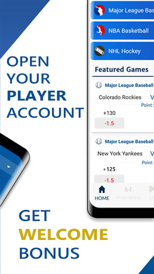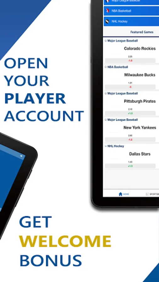 Open your account with the original Sport Betting™ App and get $2,000 in FREE BETS today! Bet Nationwide on all your favorite games including Live In-Play Betting on all major sporting events. Bet safe & secure with no deposits or fees required to play!
