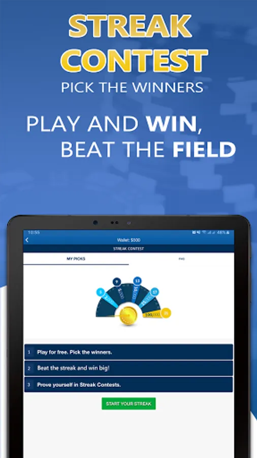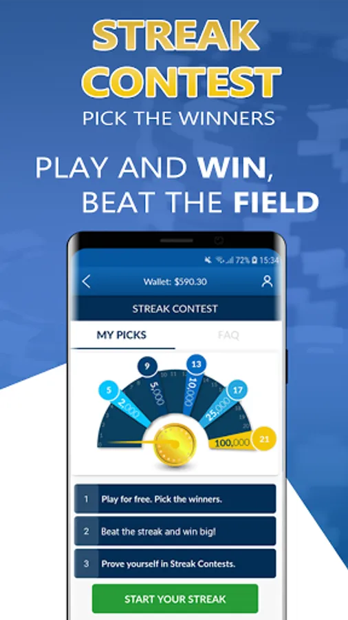 Play the Streak Contest to build your longest streak of correct picks from a daily list of professional and college sports matchups for your chance to win multiple prizes including a grand prize.