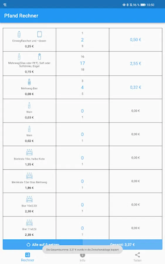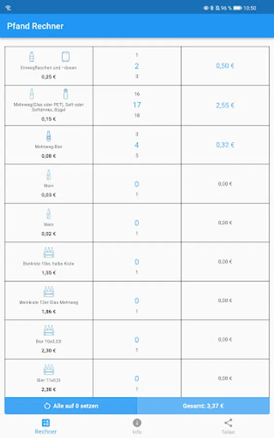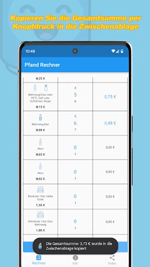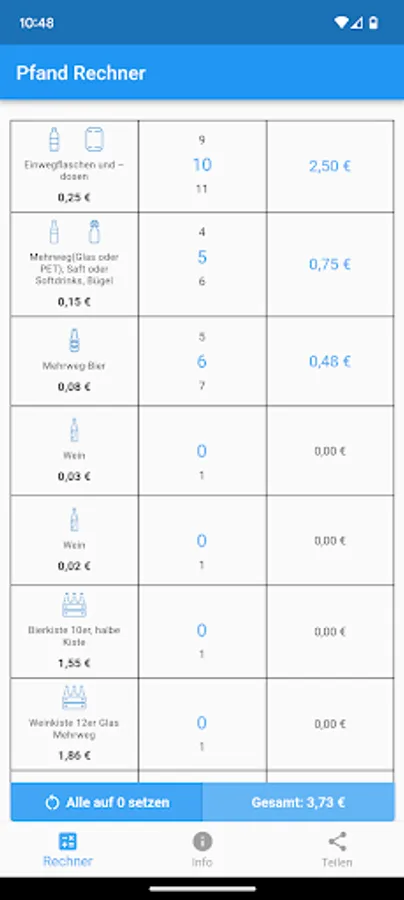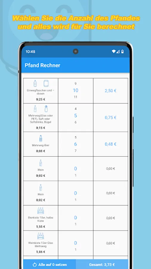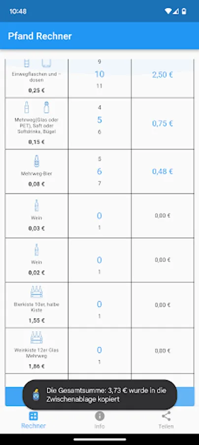 - You can calculate the amount of money you can get based on the amount of returnable bottles you have. 💶