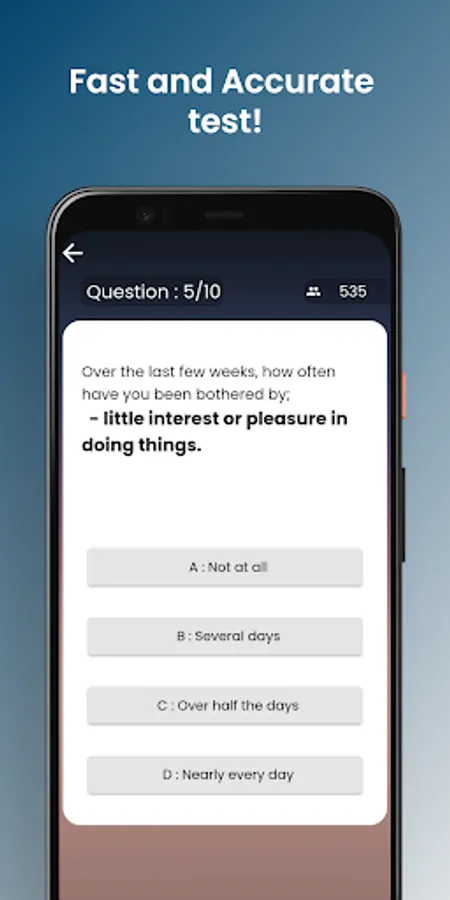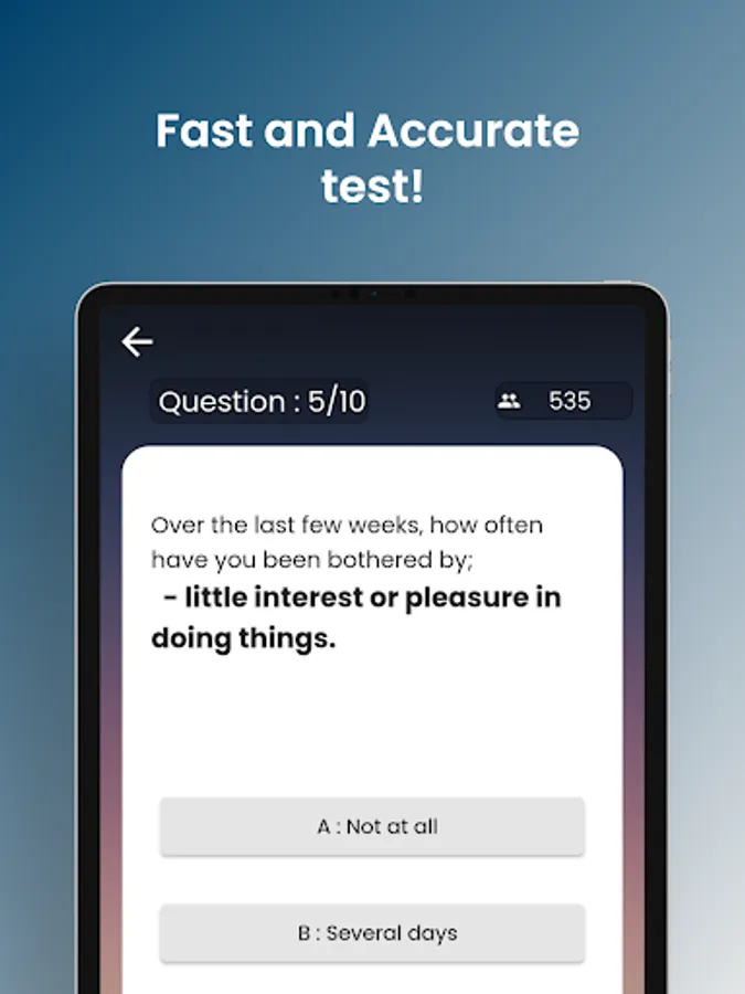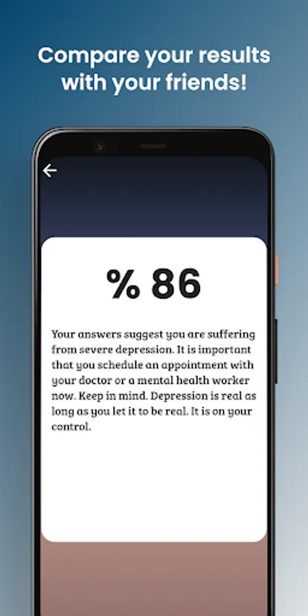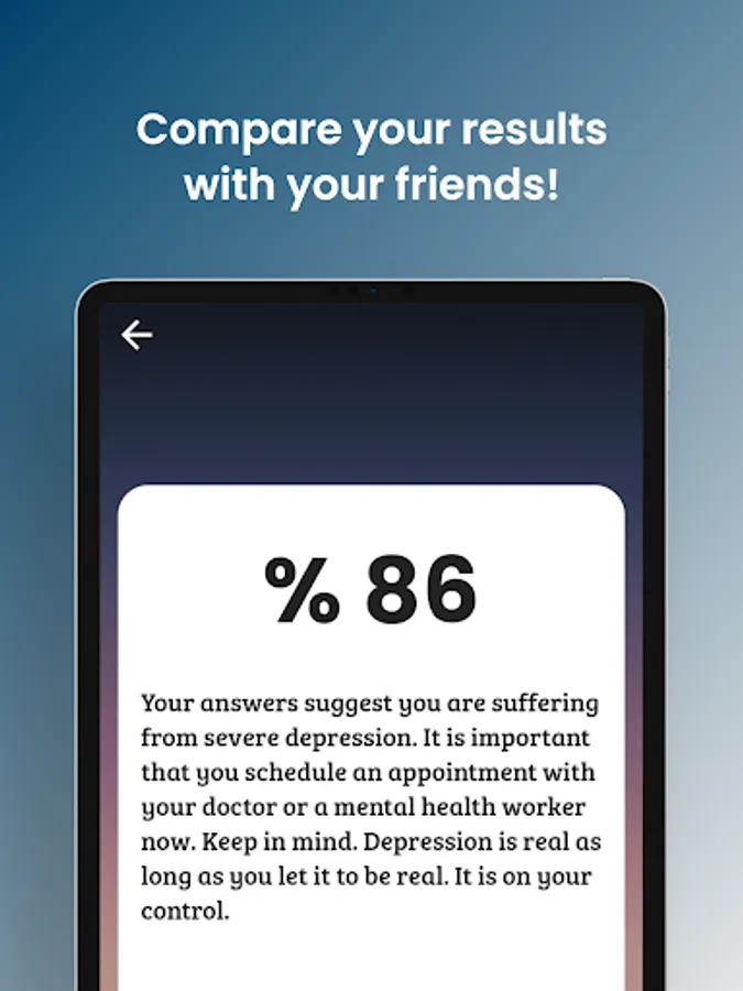 This app is designed to help you if you are suffering from a mental health condition. We all feel sad at some point but this should not affect our lives. With this app you will find out with our high accuracy test. What are you waiting for? DOWNLOAD NOW!