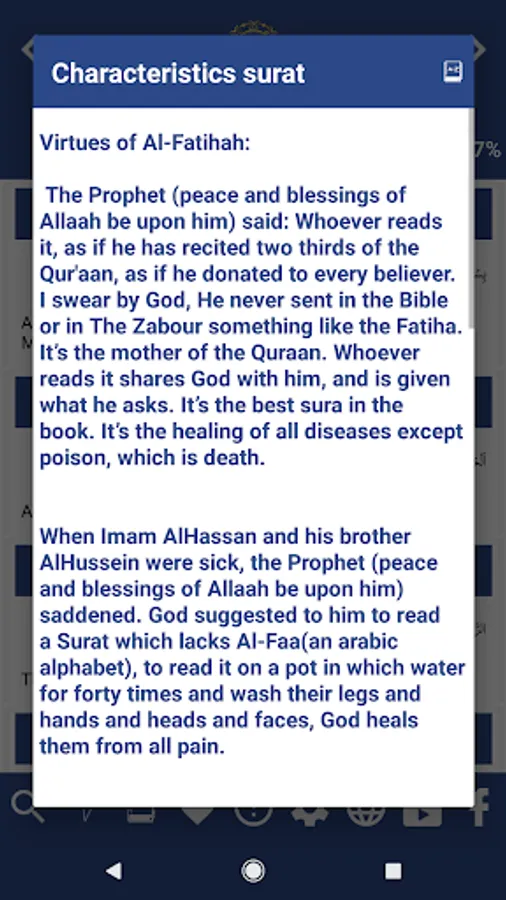 Eleyoun Qur'an for searching deep words and letter in the holy book. we have installed in Arabic & English the virtues of each Surat from the narration of Prophet Mohamed (pbuh) and hos family hold (Al-elbeit)