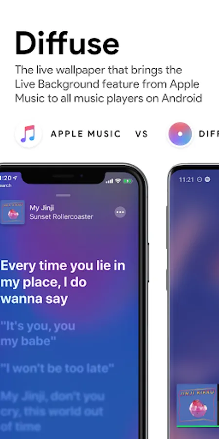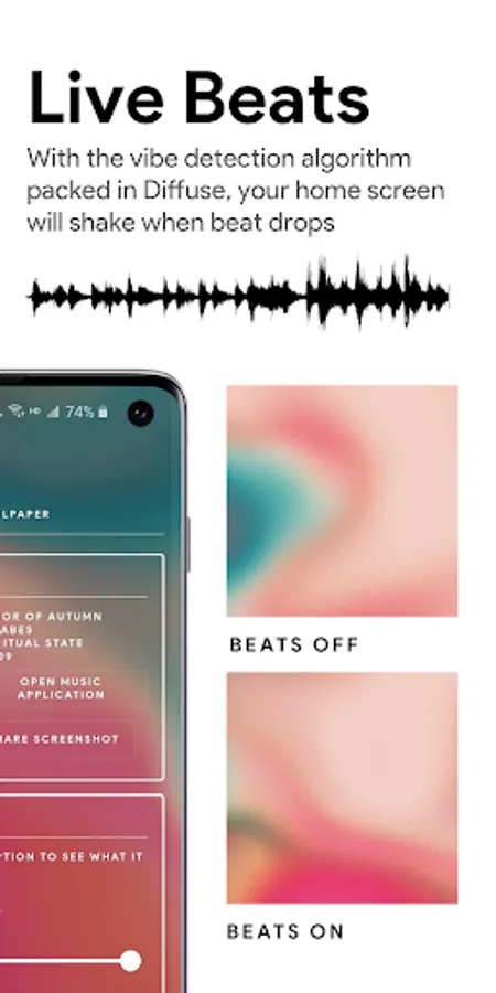 Meet Diffuse, a live wallpaper that blurs your current playing album art and displays it in an abstract, fluid-like manner in real-time. With our in-house solution Live Beats™, the background also moves when the beat drops. It's alive, vibrant, and it never gets old.
