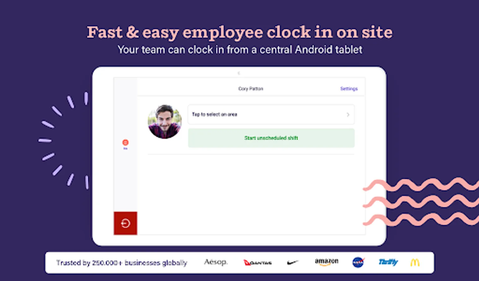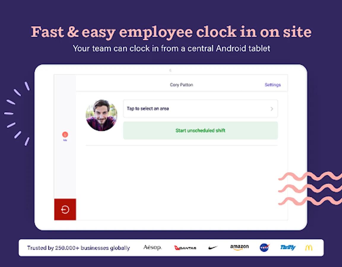 All Deputy users can use this free app to track their employee hours with their on-site tablet.