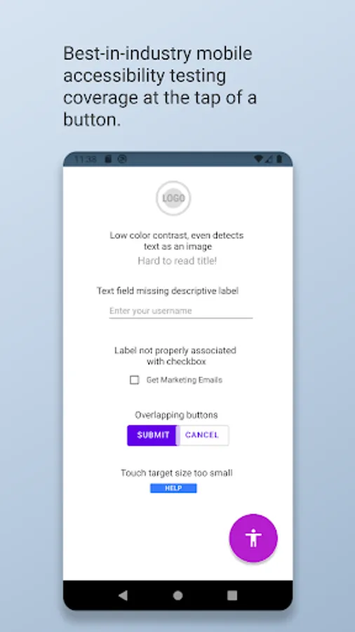 Deque’s axe DevTools Accessibility Analyzer for Android provides the most comprehensive mobile testing rule coverage available.