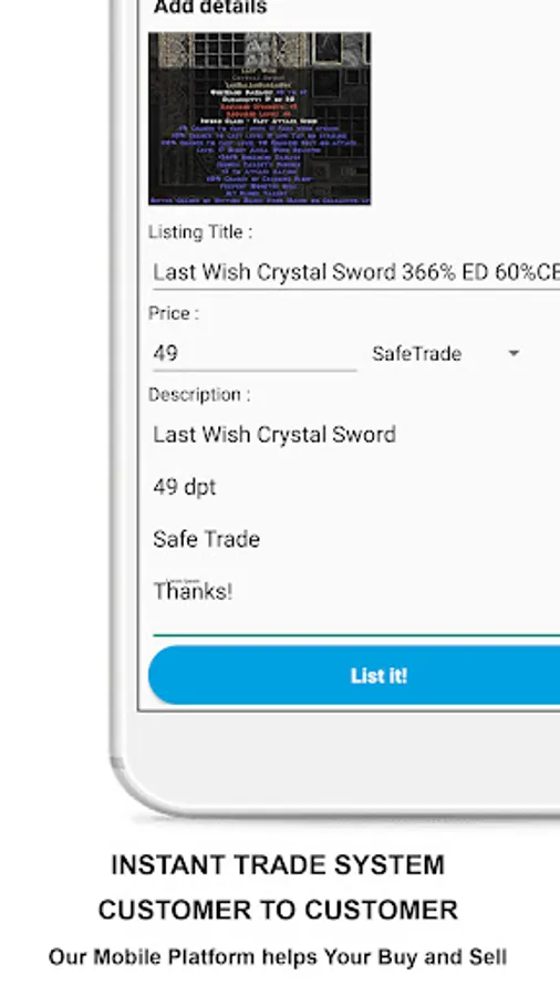 INSTANT TRADE SYSTEM CUSTOMER TO CUSTOMER