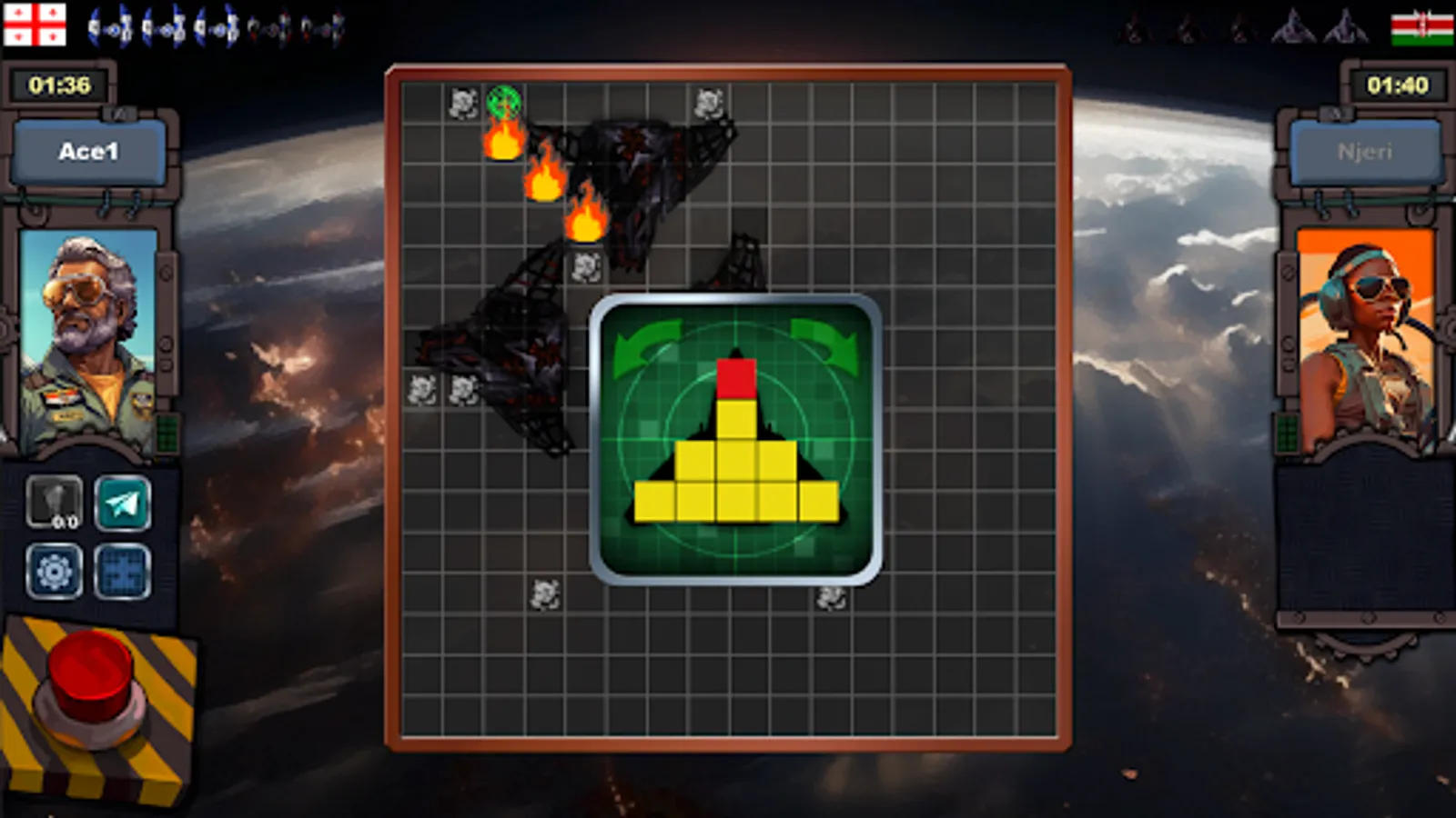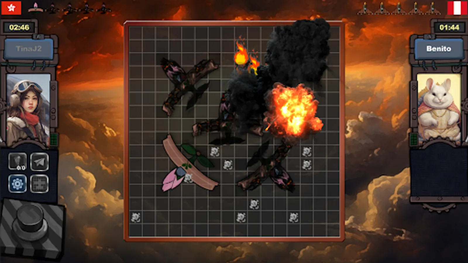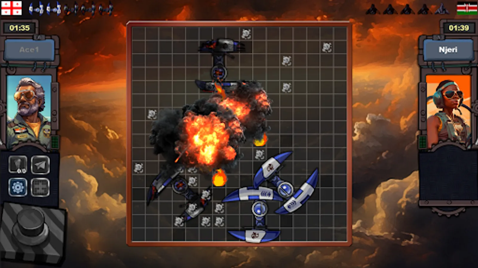 At each turn player choose a tile to strike, if it hits the enemy plane, it'll set it on fire. If it hits the weakness tile, the plane will be destroyed.
