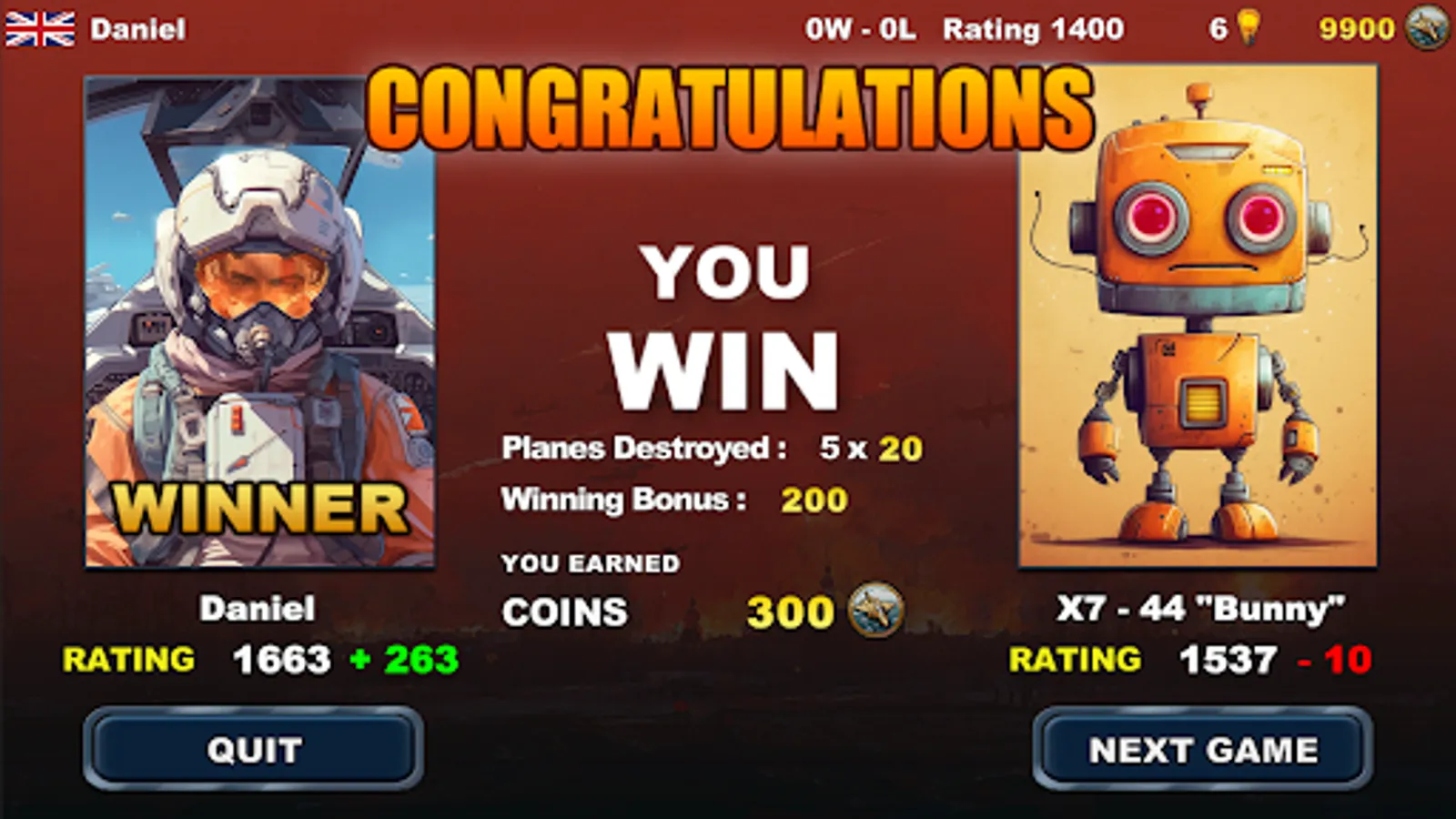 The game finishes when one player destroy all the enemy planes. That player will be the winner.