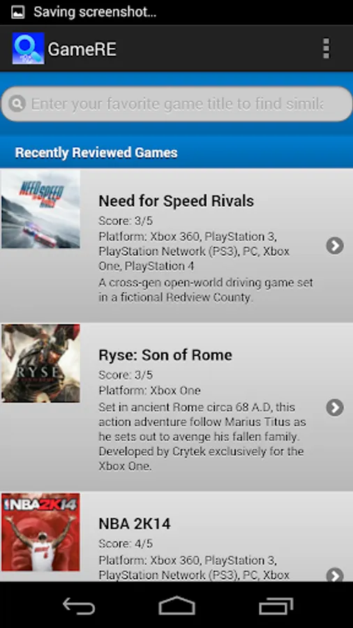 Have you ever wanted to play a game, but didn't know which one to get? Did you want to play an RPG or Racing Sim, but were looking for something a little different than you currently have? Now you can enter the title of a game you like and get a list of similar games available for your enjoyment.