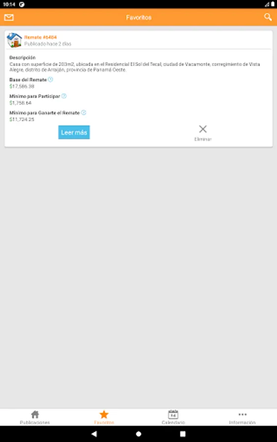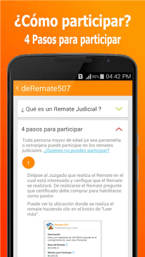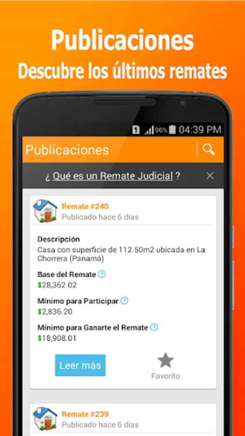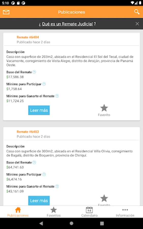 With deRemate507 you will receive notifications of judicial auctions, along with important data such as the date, time, minimum sum to participate, location of the court and others. You can also save your favorite auctions, see the steps to participate in a Judicial Auction and even search for auctions by categories, for example: land, houses, cars and others.