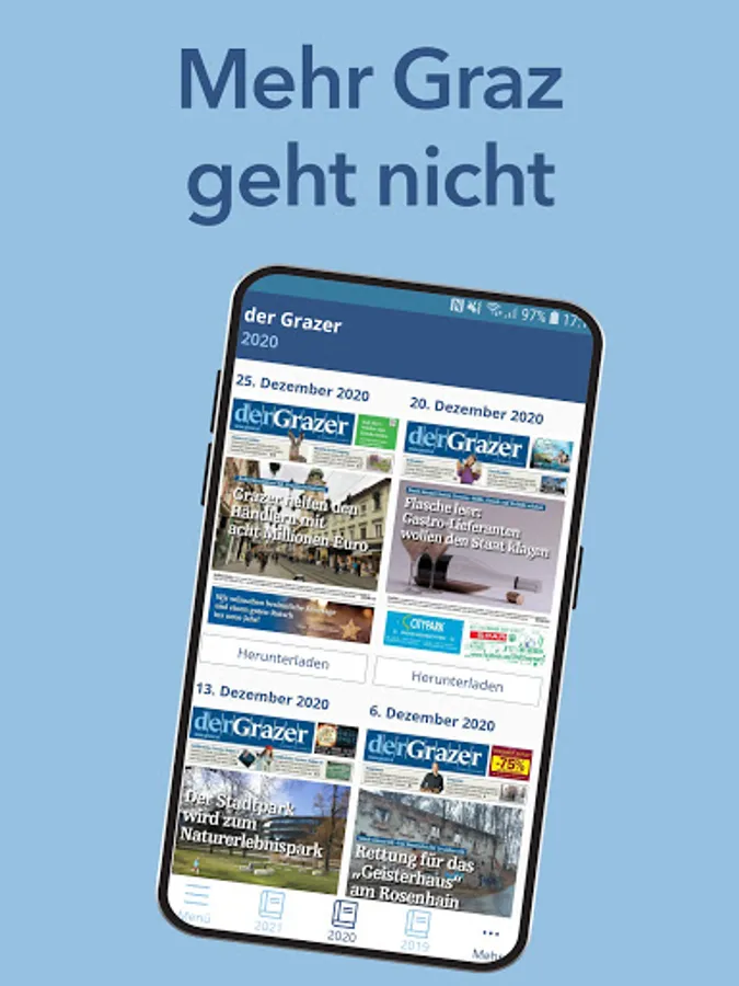 In the app there is not only the current issue with all important Graz information of the respective day, but also an archive with past numbers to rummage through. The editions can also be downloaded and read offline.