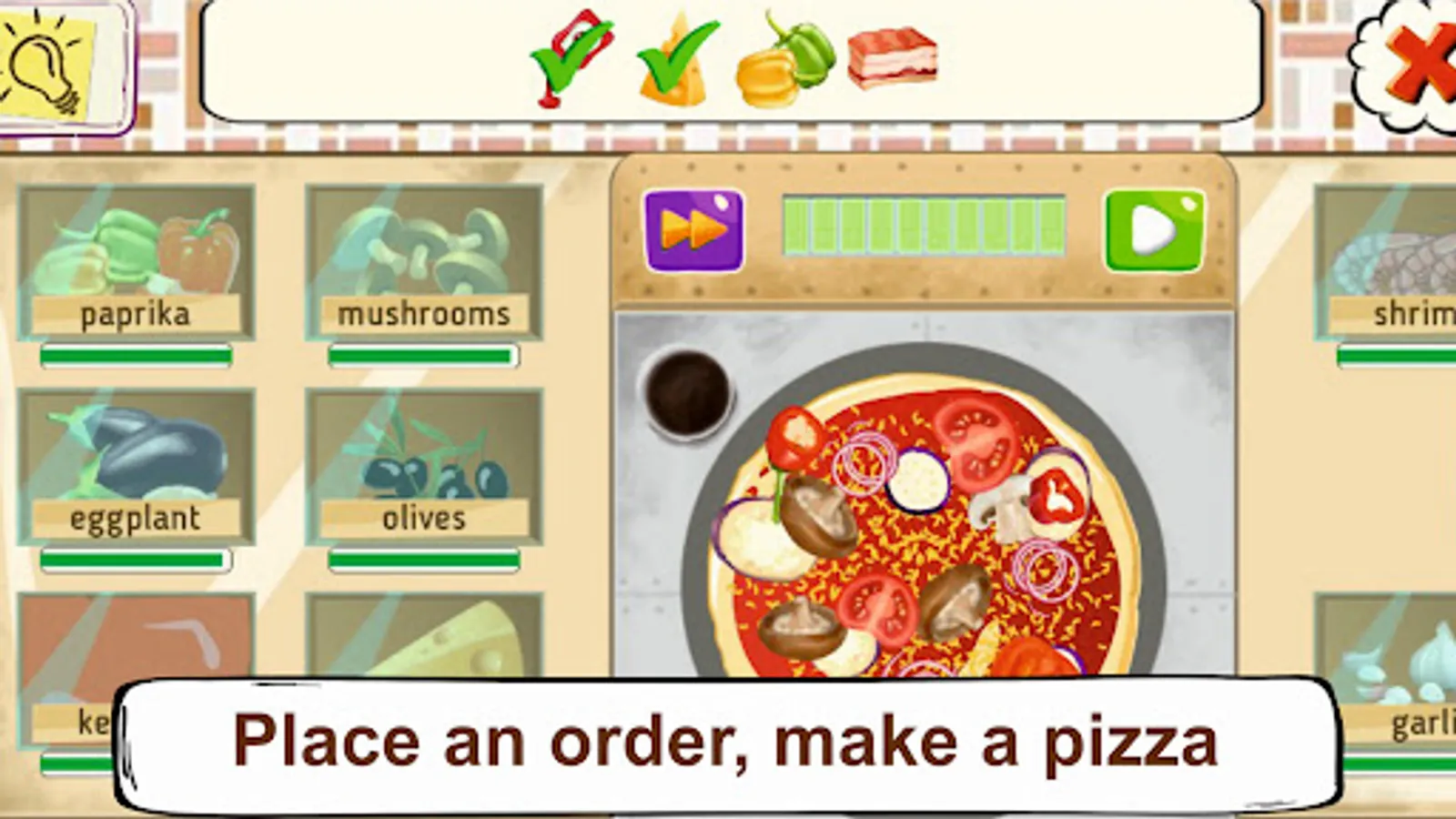 In the game, you have to serve customers and make pizza according to the order, sell coffee or ice cream in order to earn bucks to buy products from three different suppliers. For bucks, you can improve the hall and facade of your Pizzeria or choose a new car at a local car dealership. By your car you come to work in a Pizzeria, you can go to a bank, an inspection or a construction site.