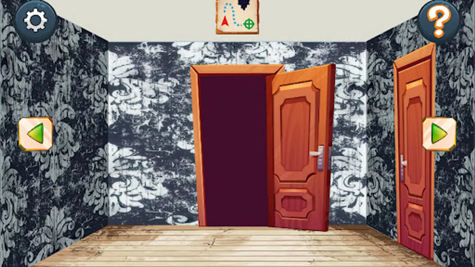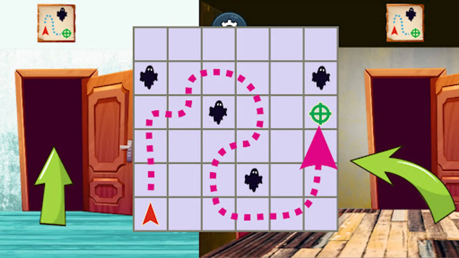 It's hard to find a way out of the maze of rooms in the old sinister house. Some rooms have ghosts that take you back to the starting room. Find the correct path to the exit. Don't go into haunted rooms.