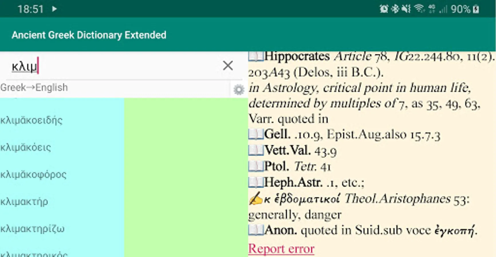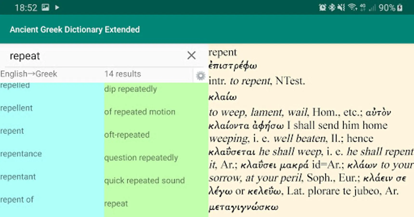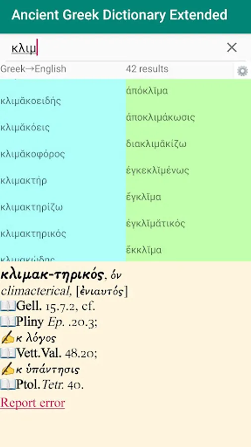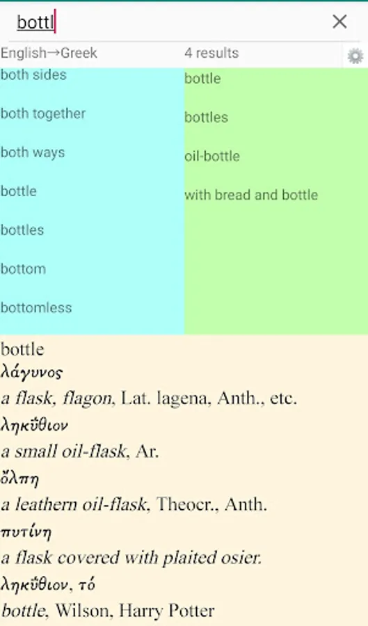This is an extended version of Ancient Greek Dictionary with a far larger number of entries (more than 116,000 Greek–English entries). It is based on the Liddell–Scott–Jones ("LSJ"/"Great Scott") Lexicon. It contains a fairly large English–Greek list (available in the free version too) which will be updated regularly. There are also nearly 18,000 cross-references to avoid the necessity of looking up variant entries. Cross-references will be expanded in the coming months.