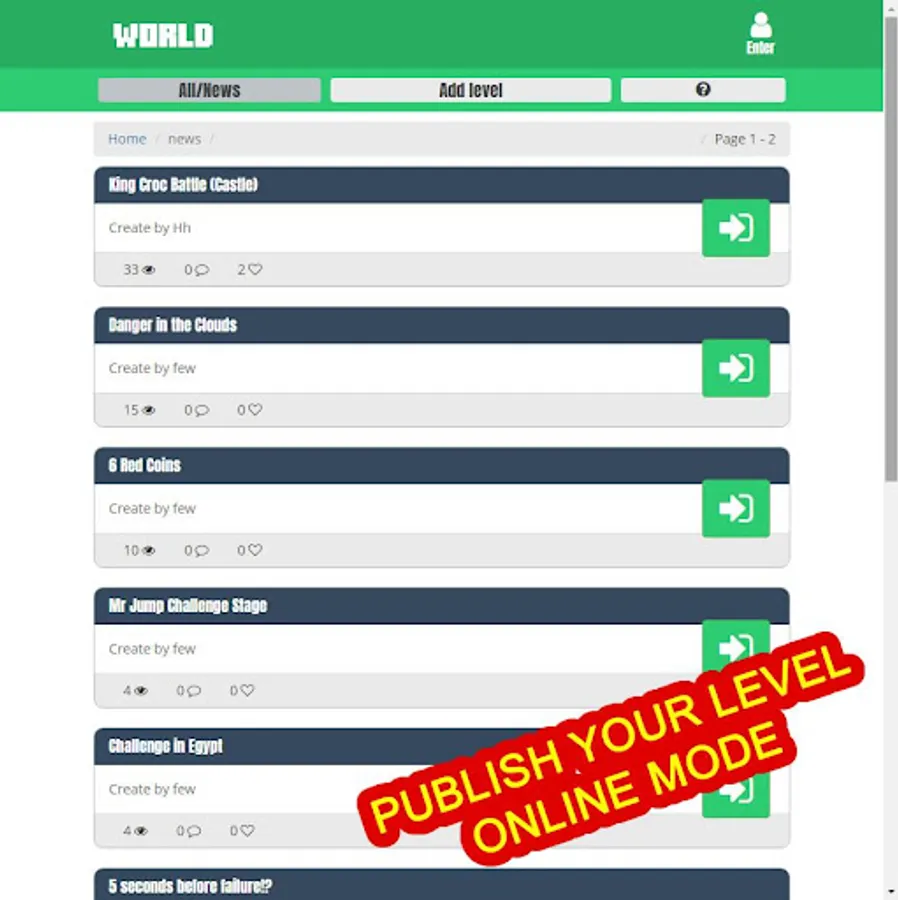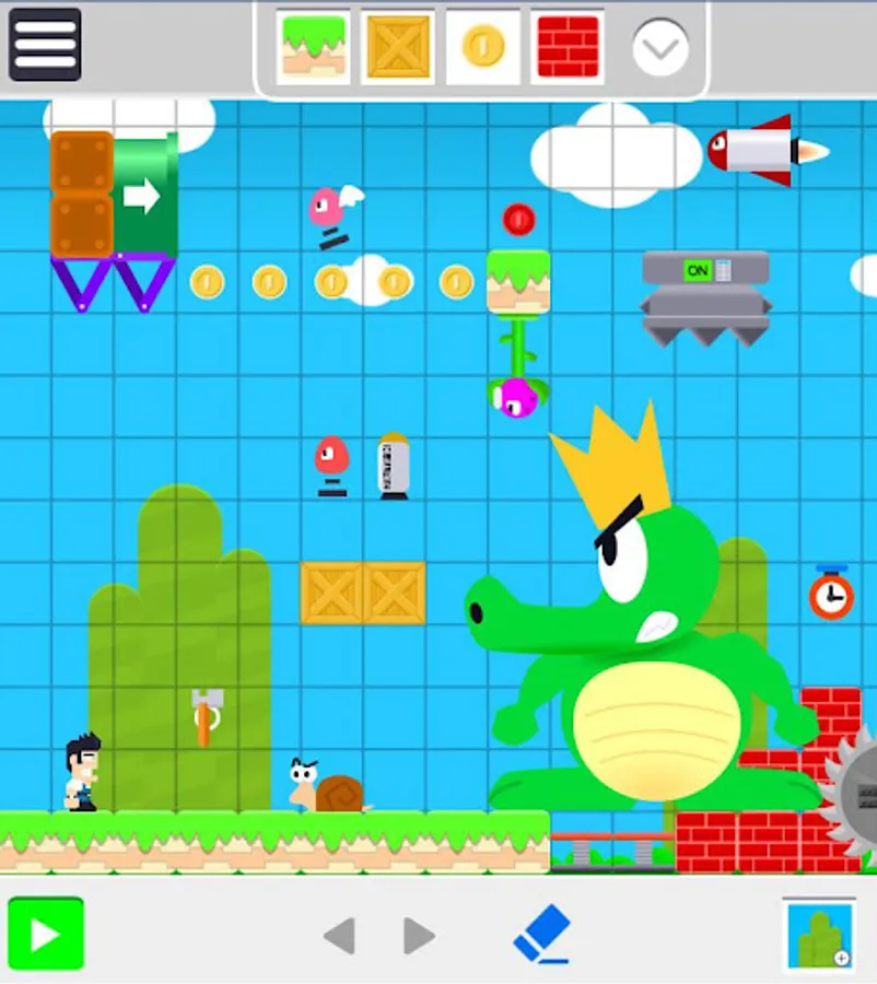 Mr Maker Run Level Editor is a run and jump platform game with a level maker. You can also play many levels. Different stages like castle, plains, desert, mountain, snow, clouds, flowers and candy world.