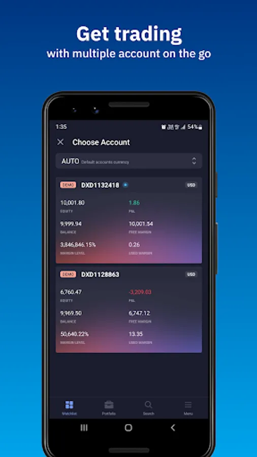 Practice forex trading, crypto, and synthetics with a demo account preloaded with USD 10,000 virtual funds.