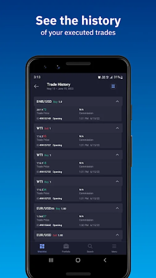 Commodities and forex trading are limited to market hours, while synthetics and cryptocurrency trading are available round-the-clock on our trading app.