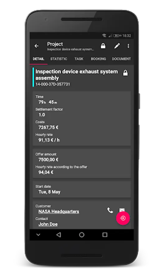 • Projects that are assigned to customers and contacts and can be tagged with categories
