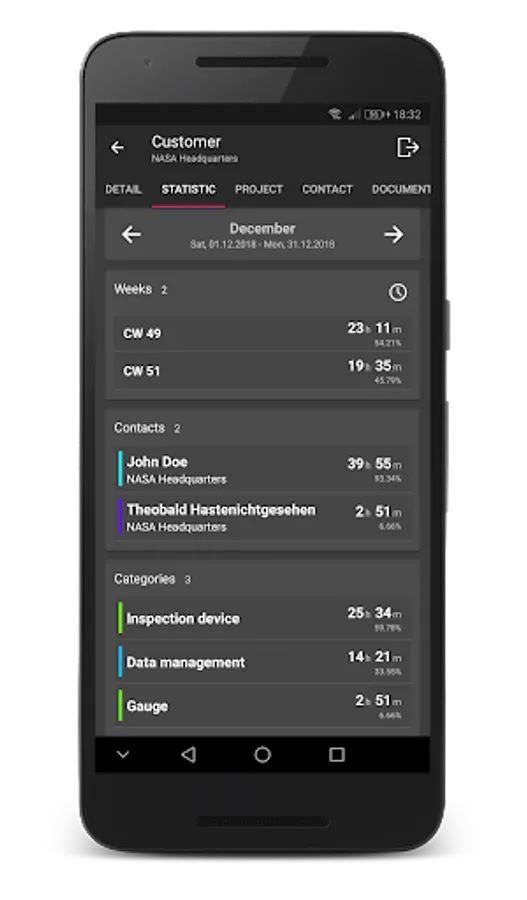 • Quick and clear statistics for each area (customers, contacts, projects, category, hardware / software, activity) divided into day, week, month and year overview.