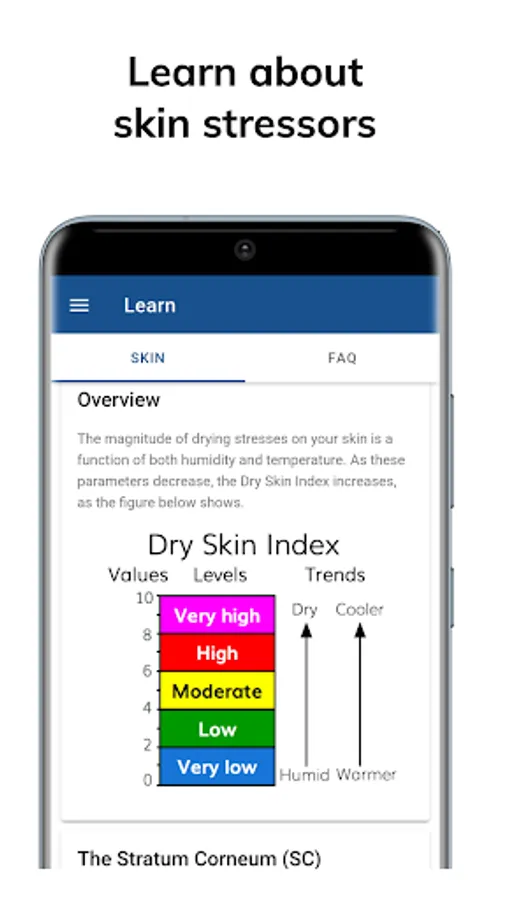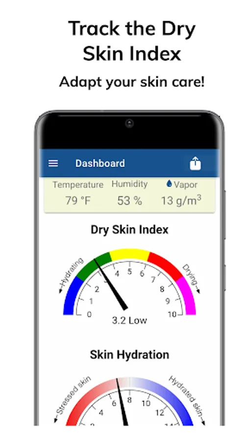 The DSI Sense device [purchased separately] measures the drying stresses on skin due to changes in indoor temperature and humidity.