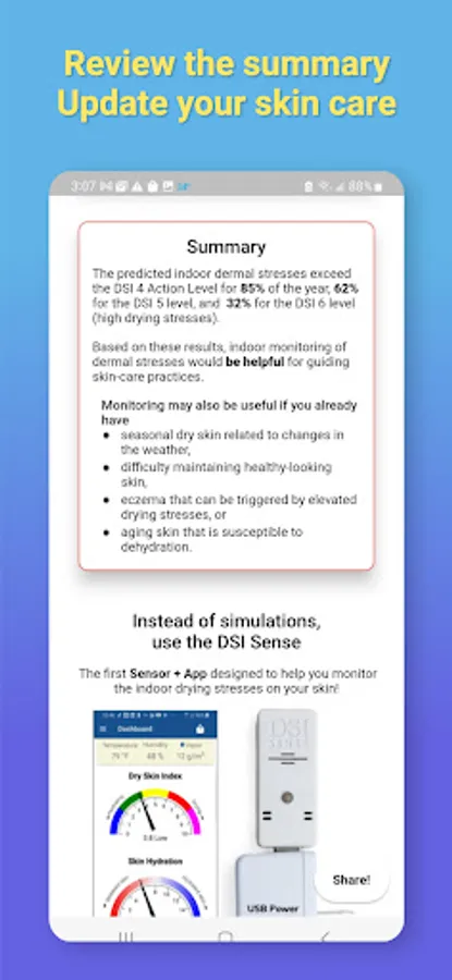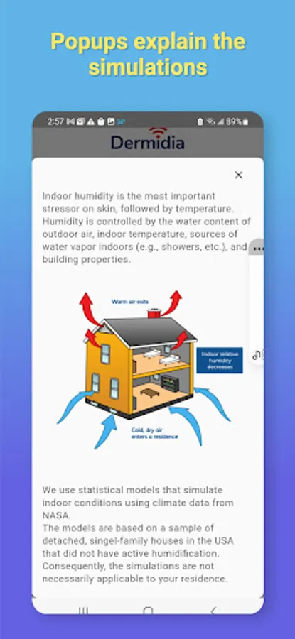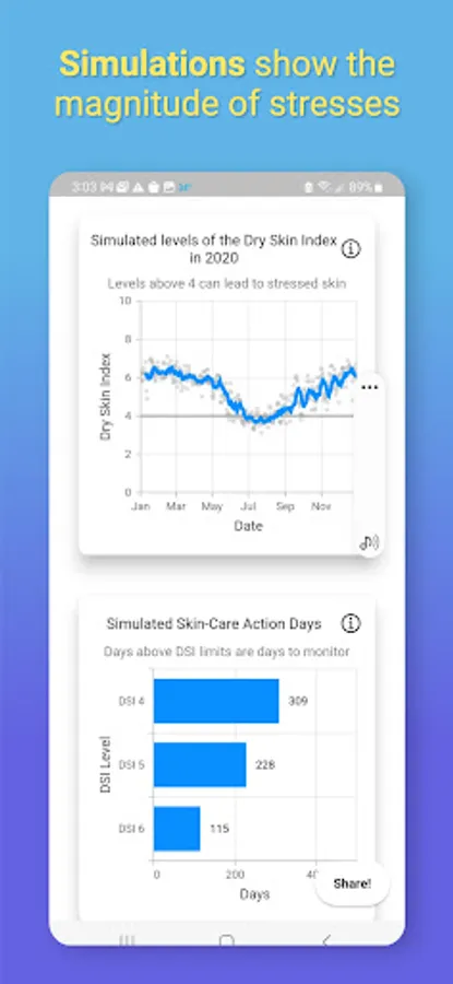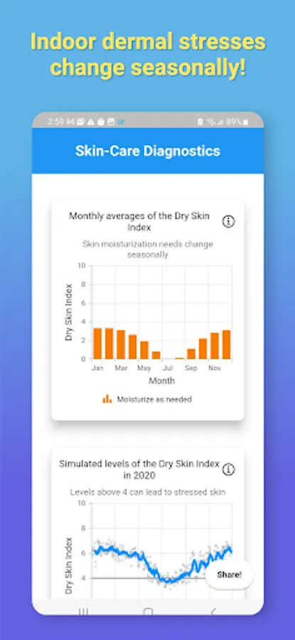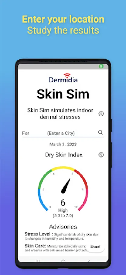 The Skin Sim app uses a statistical model plus local climate data to simulate indoor drying stresses on skin. This is the first app of its kind to provide people with insights regarding how such stresses impact their skin across the seasons.