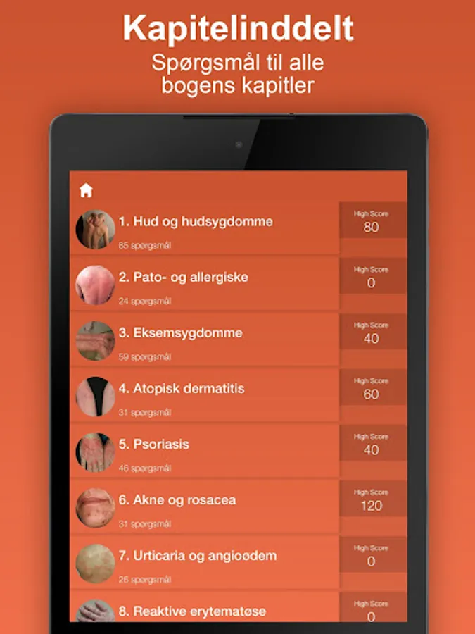 Categories and questions are based on the textbook Clinical dermatology and venerology 4. edition of Lars Iversen et al. For each quiz you can see a status of your answers to this particular quiz and you can dodge your readers and your friends via the Game Center on iPhone and iPad.