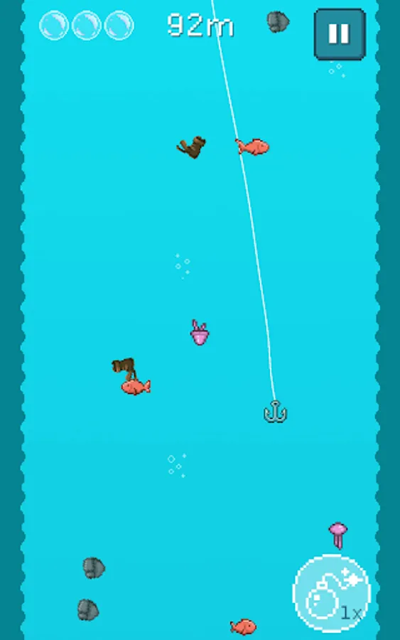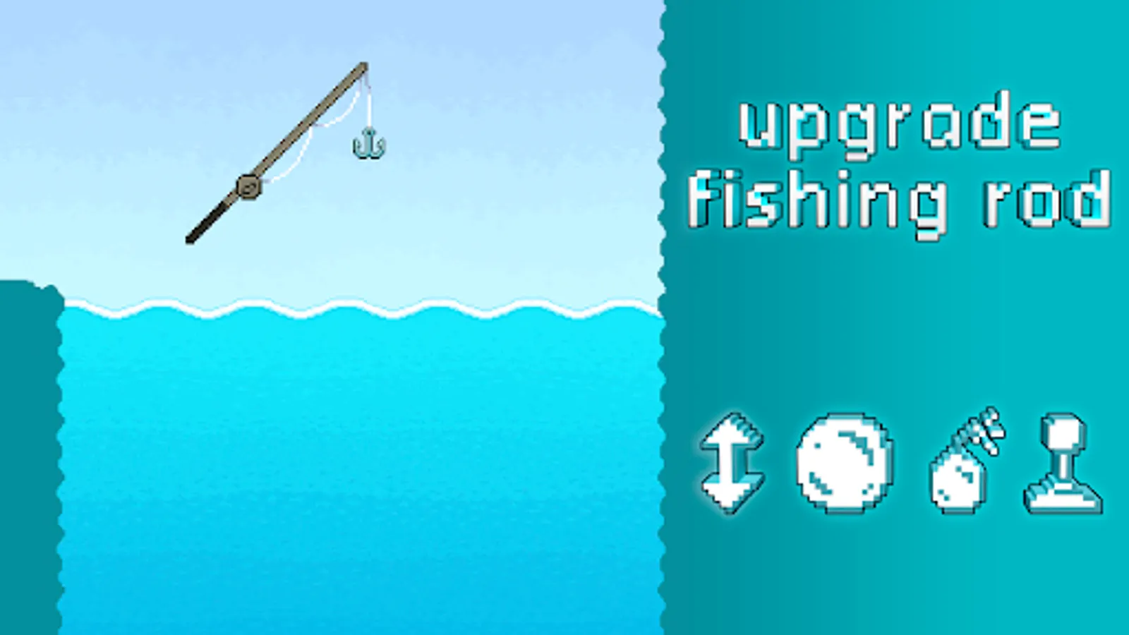 Your goal in the game is to reach the very bottom of the sea and get the coveted treasure chest! But for this you will need to improve your fishing rod as much as possible.