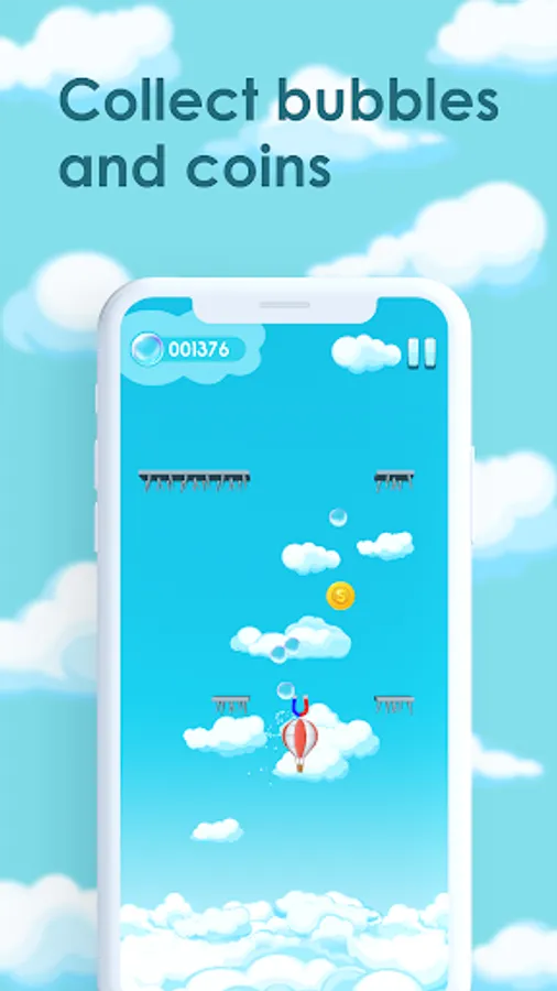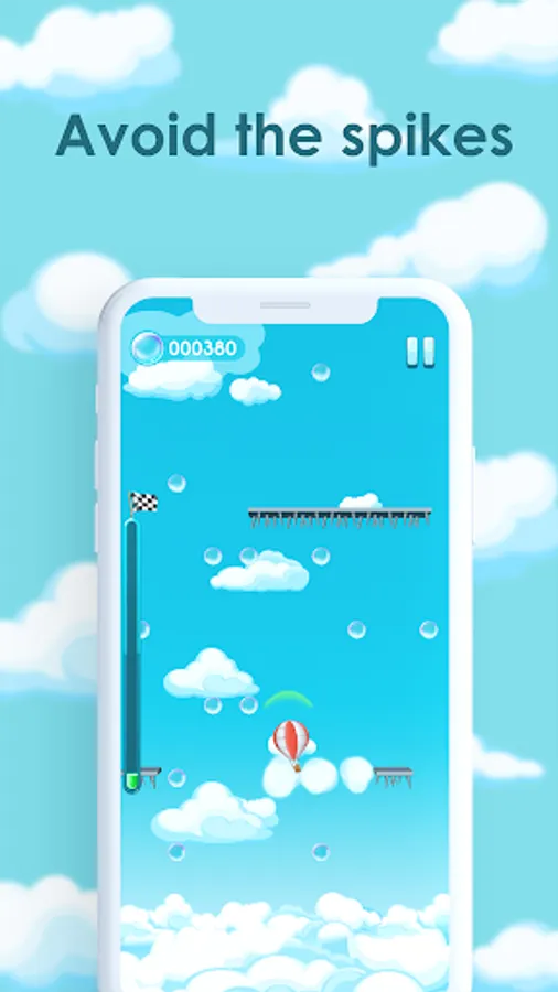 Hot air balloon is a game like Endless Runner. You are controlling a hot air balloon and the goal is to avoid the spikes and try to collect as many bubbles as you can. Also you can control a funny parachutist, with similar goals. You can use power-ups: shield, magnet, time dilation.