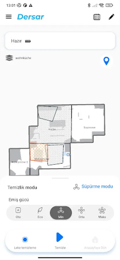 Always stay in the know about cleaning schedules, progress, and the remaining duration of the cleaning run. Assuming there are three rooms to clean in your apartment, DERSAR ROBOT will tell you in which order it will clean them and how long it will take.
