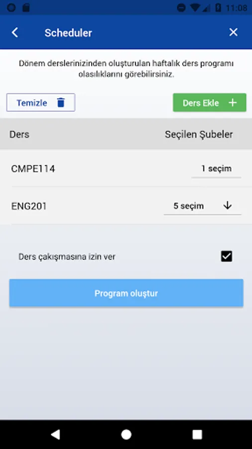 Specially prepared for a university in Ankara, Dersbot enables students to create and save their course schedules and to be informed about possible changes.