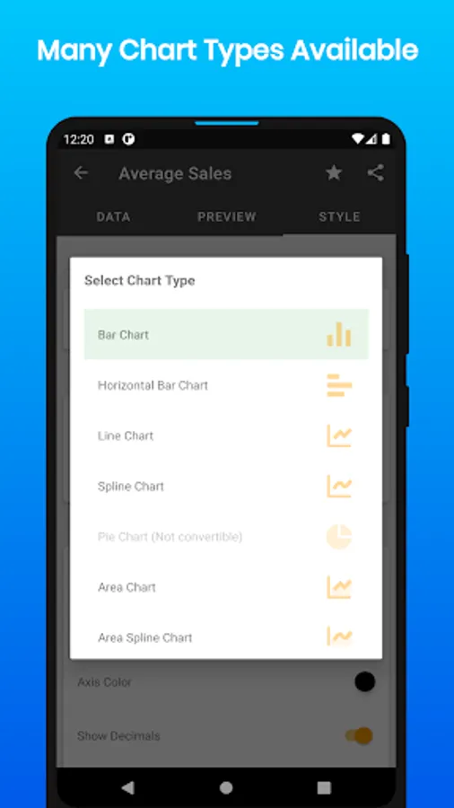 - Change chart type anytime. You can change your bar chart to pie chart or line graph after created it.