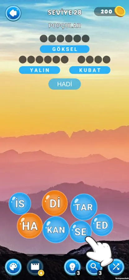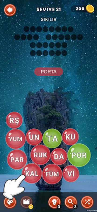 At the beginning of each level, the word derivation gives you a clue. When the game starts, the word bubbles fall down and these bubbles are also called word pearls. The word pearls in the game contain letters inside them. Find hidden words related to the given clue by combining pearls and when you find them all you will move on to the next level.