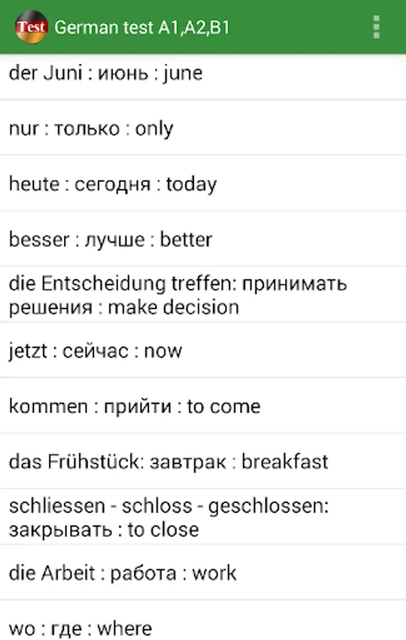 To verify or improve your knowledge for you are created German tests for the level A1, A2, B1, B2. When you are studying the theory, doing some exercise, you may feel that you have learned well a particular material. But it is a lot more efficient to test yourself on real examples.