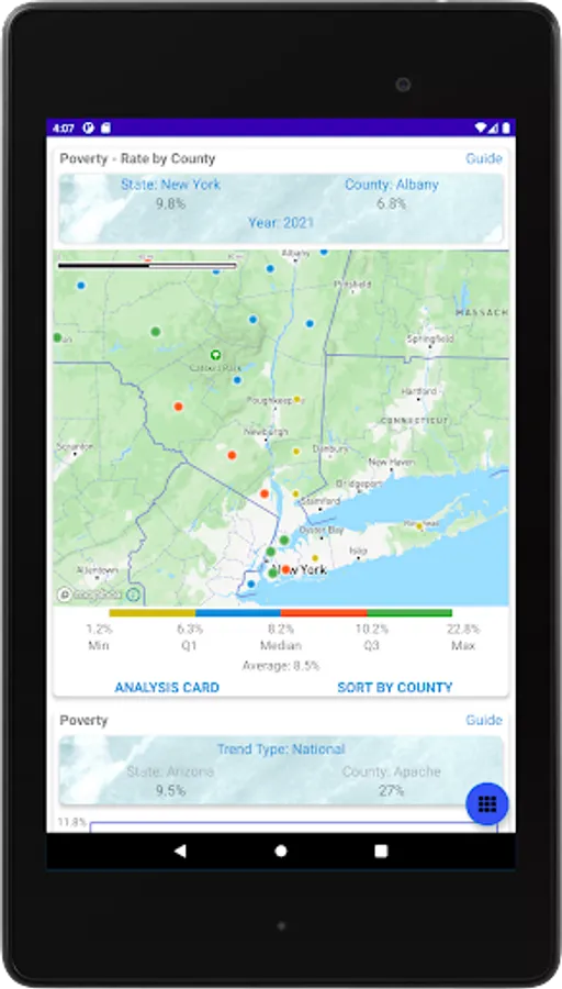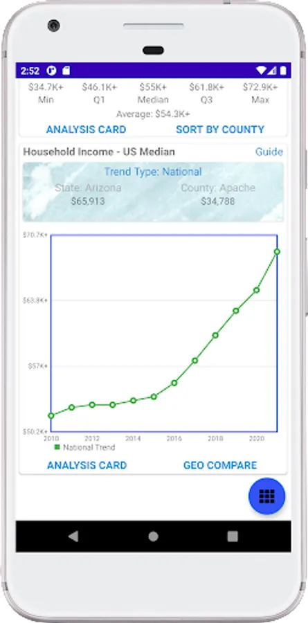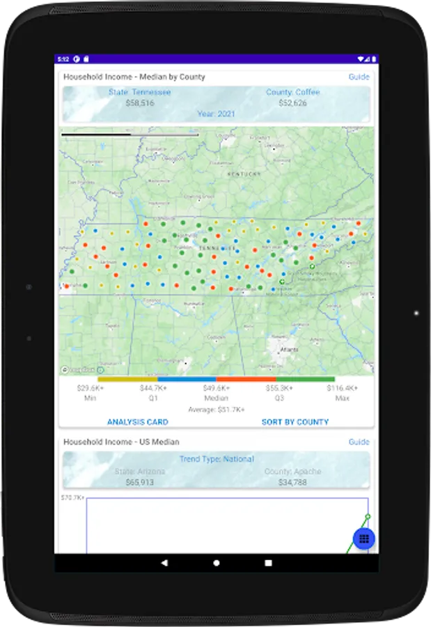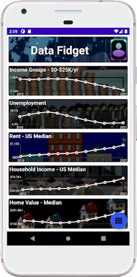 Map, graph, explore and analyze income, housing, social, and demographic data sets throughout the United States. Quickly and easily access annual data sets since 2010 with nine informative datasets including household income, rent, mortgage, poverty, unemployment, home value and more. Get data insights to help you better understand data trends around you and across the United States. Enjoy hopping from dataset to dataset and modify maps and graphs with ease. Whether for professional or personal use, Data Fidget’s design allows anyone to easily access essential information to support business needs or satisfy their curiosities.