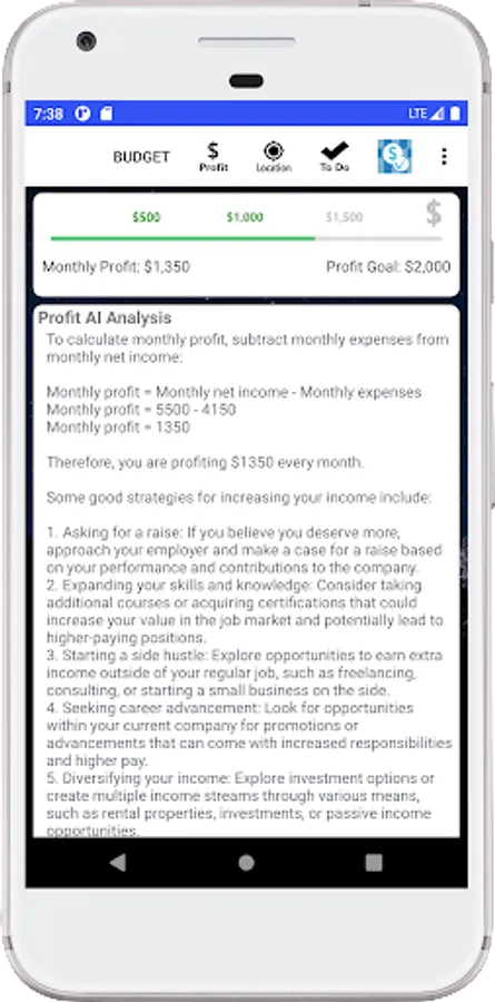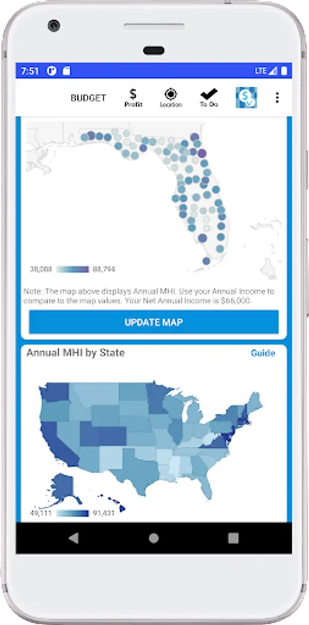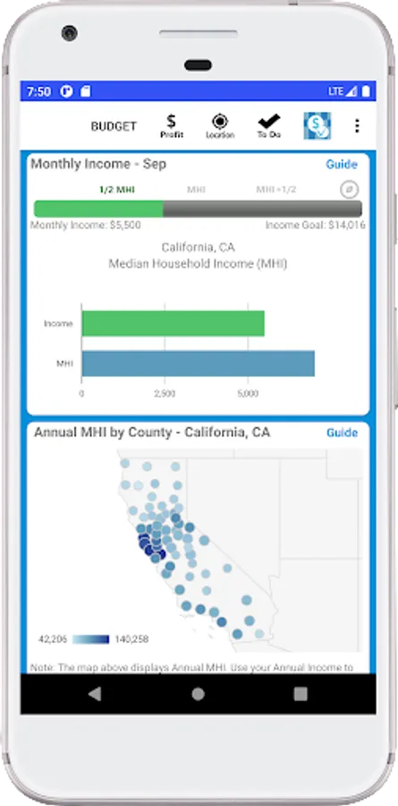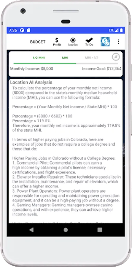 Track your monthly budget and income, with graphs, maps and AI analysis. Simple and easy budget data entry allows you to quickly estimate your monthly profit and compare your income to your state's Median Household Income (MHI). Budget and income analysis tools help you evaluate your income strengths and weaknesses. Use To Do Tickets to track and complete budget tasks and keep your ideas moving forward. If you are up for a little fun see how your income compares to the apps 4 Key Performance Indicators (KPIs) and check out AI feedback for new ideas and considerations. To the point and easy to use, Income Budget AI could be the budget app that works for you.