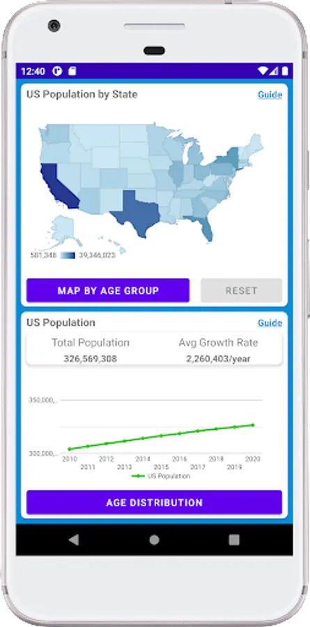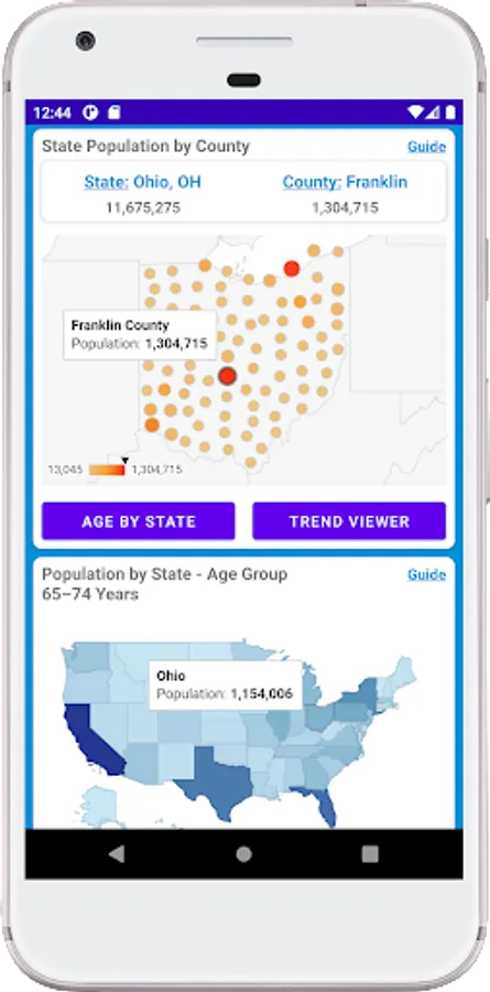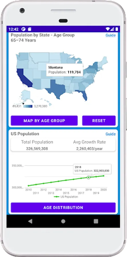 US Population: Explore state and county populations throughout the US. Using graphs and maps explore population totals, age groups and population trends over time. Population by state shows the highest and lowest populations in the US. See which states and counties are growing and shrinking in population size. Grow your state of mind with an easy to use quick reference for understanding population dynamics in the United States.