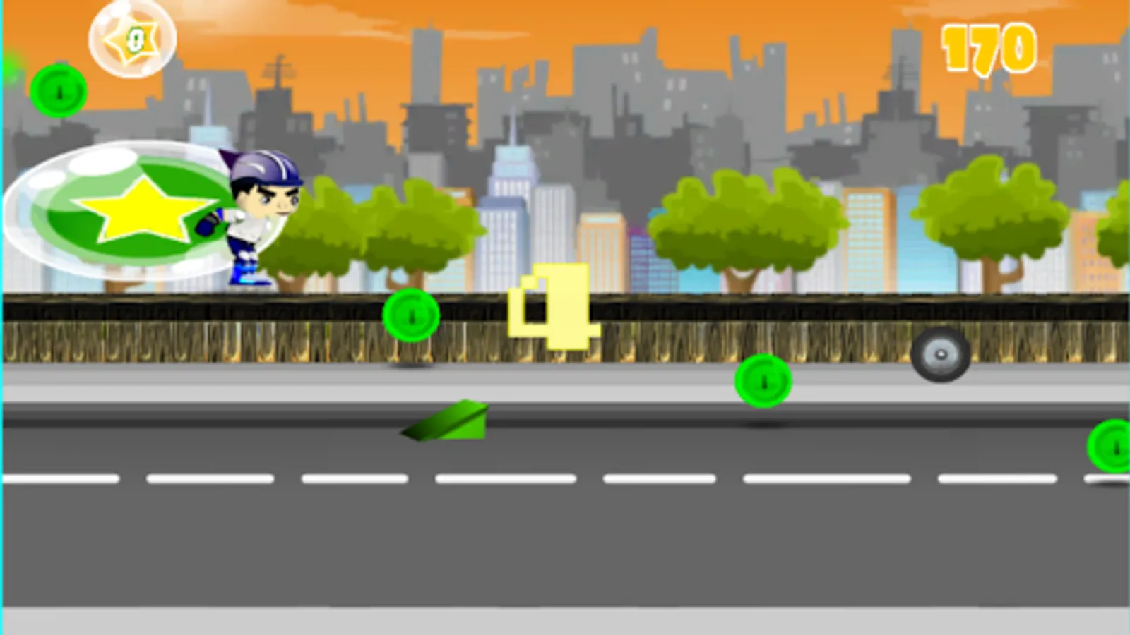Travel the road in roller skates jumping and avoiding obstacles, if you hit an obstacle you will have the opportunity to continue, but next time you will lose the game. You can also accumulate stars, those that are changed to have more opportunities and continue the games.