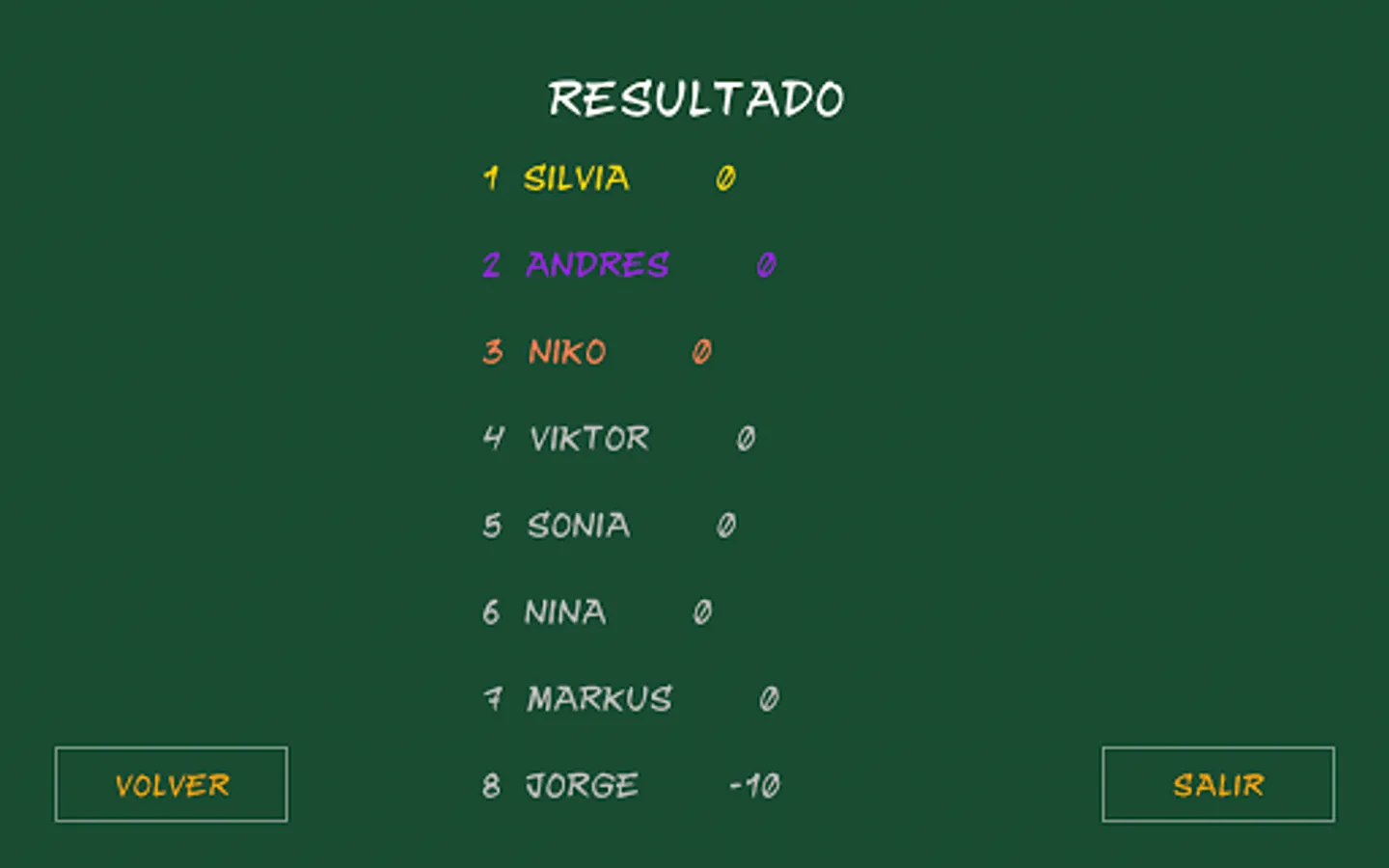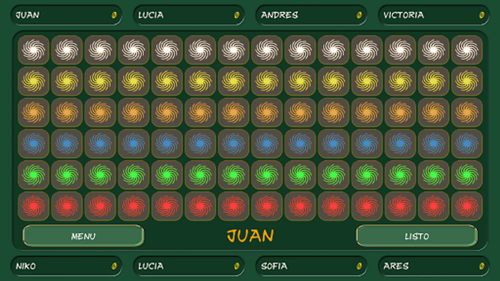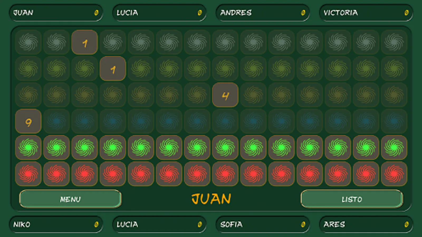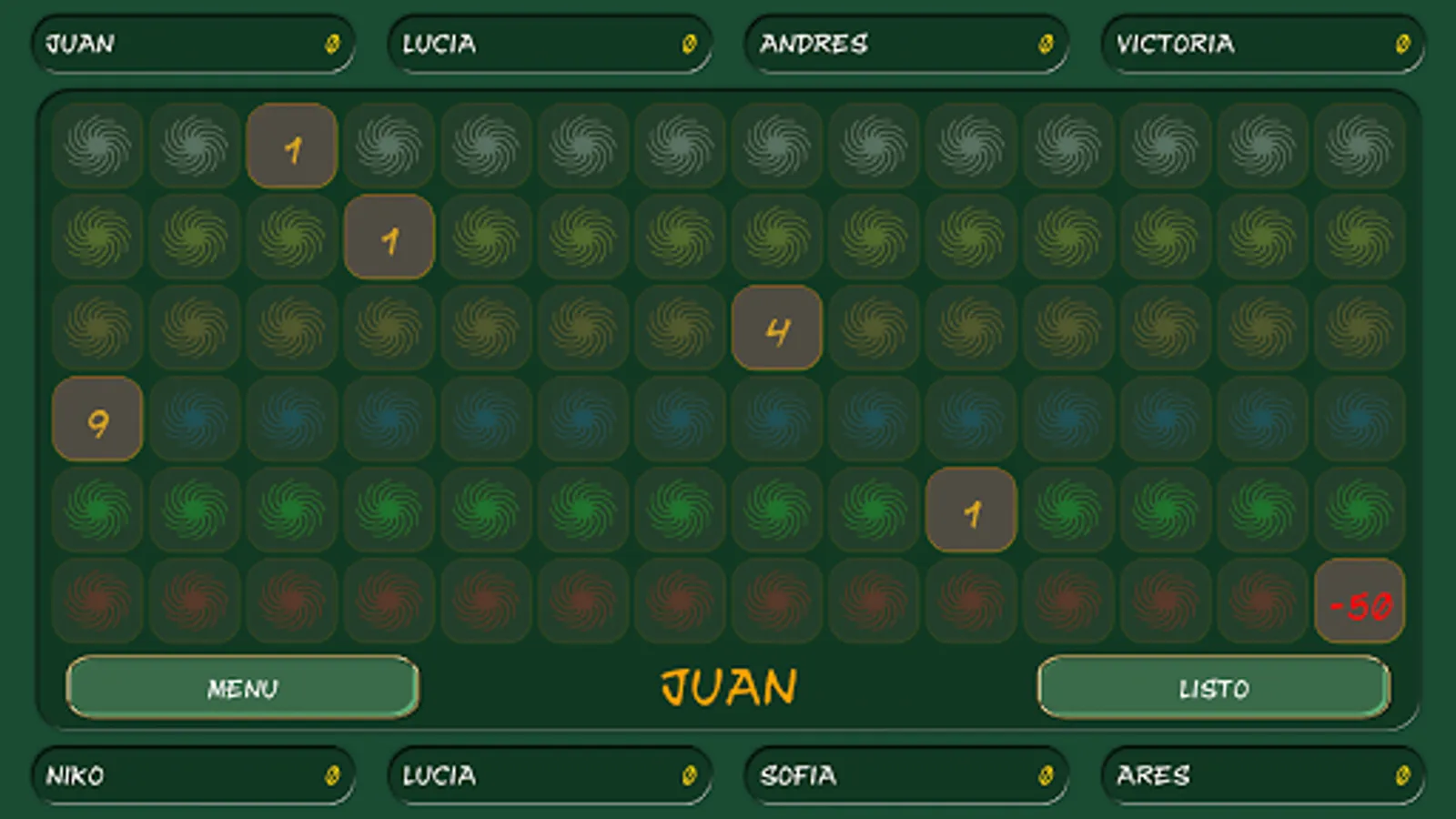 Neclic numbers game for familia.Los game players have to open the letters and thus are gaining points, behind each card a positive number or negativo.Si hides the player opens a menu with positive value can continue to open up to six cards (one of each color), points will be added to open six letters or if the player does not want to risk more and press the Done key, if the player opens for example 4 cards and to open the fifth you get a negative number the player loses the point of this game and subtracted from their points won the negative value of the card abierta.Si the player manages to open the six cards will be added every point of this game and a prize extra.Las white cards are more there is only one safe behind them negative and 13 positive, but white letters give little reward can draw maximum 5 puntos.Desde white letters to the red cards reward but the risk is also increasing so the player must decide whether to risk or going slowly opening the safest colors and pass the turn to the next player.