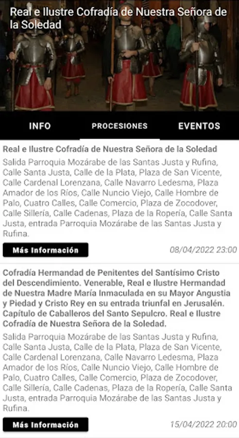 In the list of Events you can consult all the Acts and Events of the different Brotherhoods of Holy Week in Toledo.