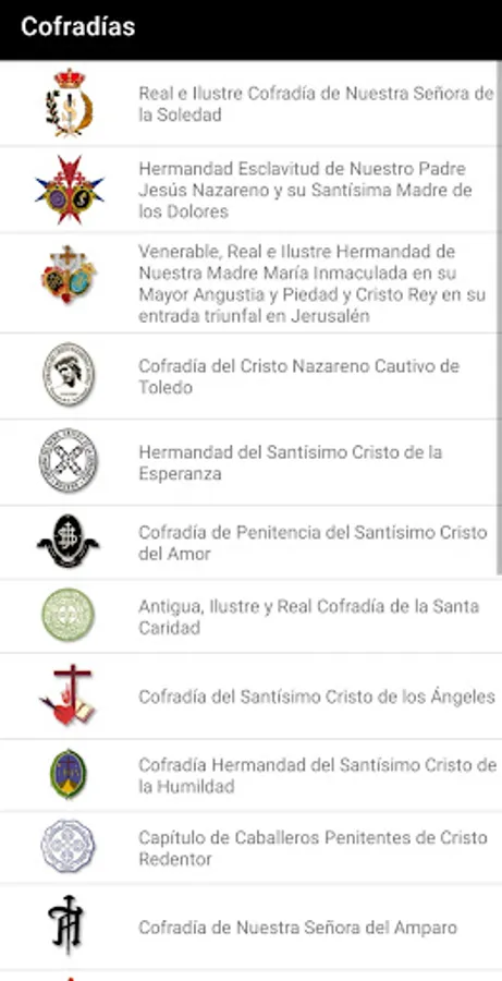 In the list of Brotherhoods you can access the historical information of the different Brotherhoods of Toledo, directly access their processions and their events.