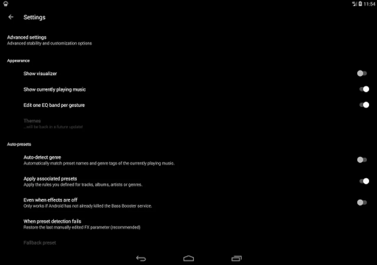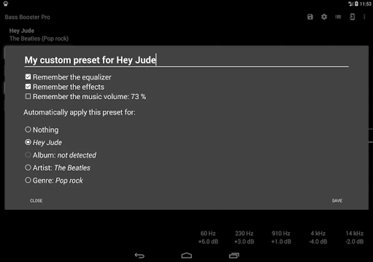 This feature allows presets to be automatically adjusted according to the music that is being played. Let's say that you're listening to some Alternative Rock music, by default, Bass Booster will automatically choose the Rock preset, but if you create a custom "Rock" preset, yours will be selected.